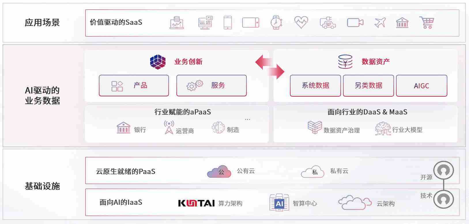 数字时代,,,,围绕企业数字化转型的关键要素,,摩根娱乐数码开创性的提出数云融合战略和技术体系框架,,,,着力在云原生、、数字原生、、、AI原生和信创产业上架构产品和服务能力,,为处在不同数字化转型阶段的快消零售、、、汽车、、金融、、、、医疗、、、、政企、、、、教育、、、运营商等行业客户提供泛在的敏捷IT能力和融合的数据驱动能力,,,构建跨界融合创新的数字业务场景和新业务模式,,,助力企业级客户建立面向未来的核心能力和竞争优势,,,,全面推动社会的数字化、、智能化转型升级。。。