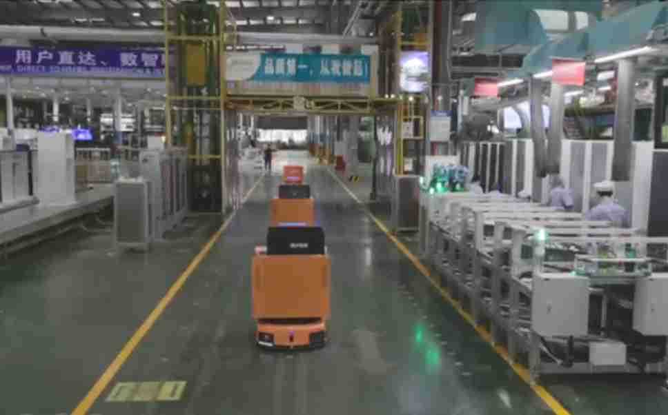 为车载冰箱物流配送打造的智能解决方案,,包含产中物流通过潜伏举升AMR搬运至线边,,产后成品物流智能仓储,,,流程包含产中物流智能齐套入库,,,,线边安灯叫料AMR智能配送至线边,,成品入库、、、、出库,,,通过无人堆高车机器人,,,,智能仓储管理替代人工作业管理,,,实现更高存储、、、、更高效率、、更具柔性化的解决方案。。。